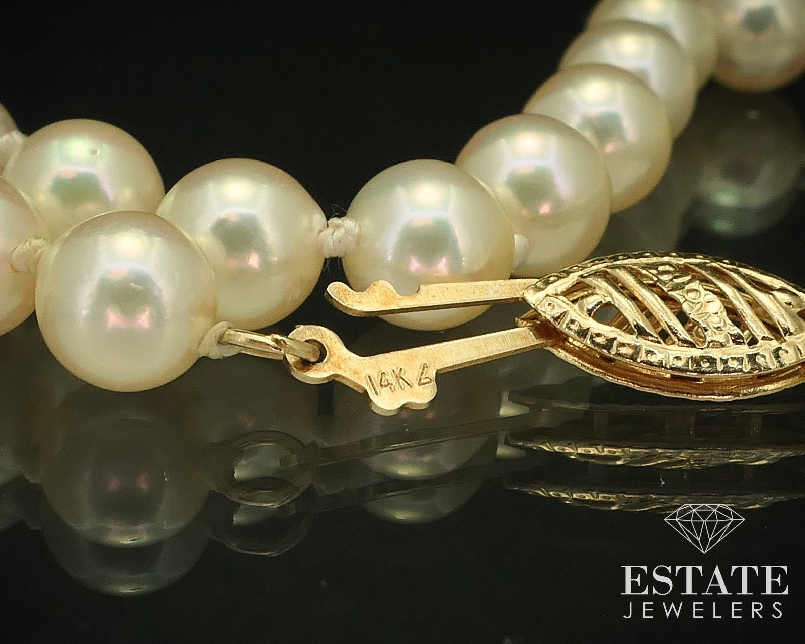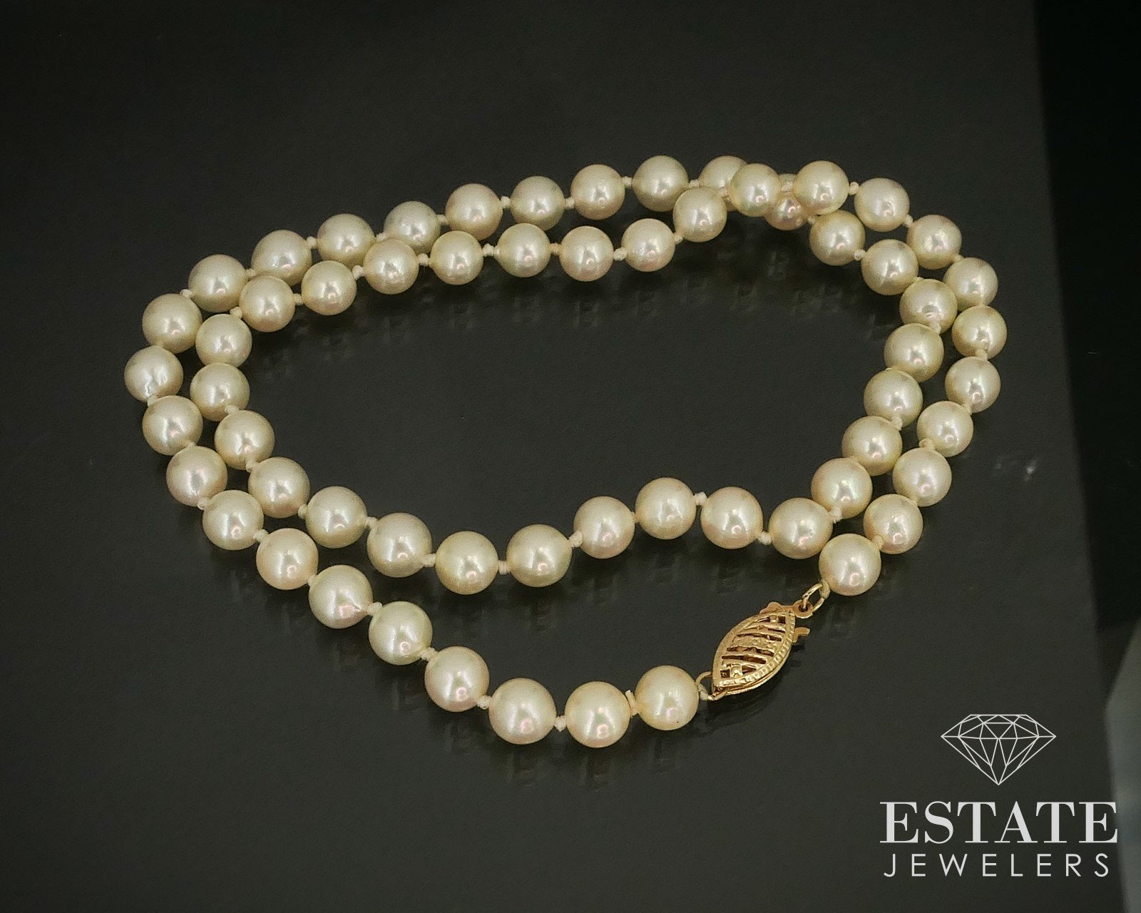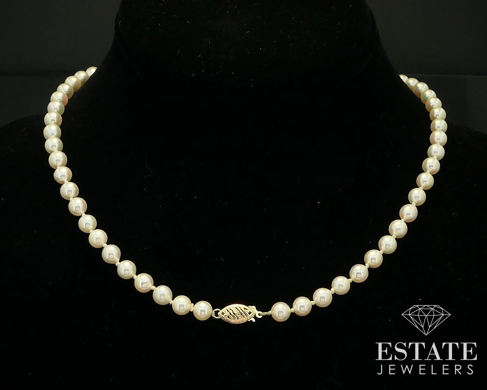 Vintage 14k Yellow Gold 5.7mm Cultured Pearl Ladies Necklace 16"L i15743