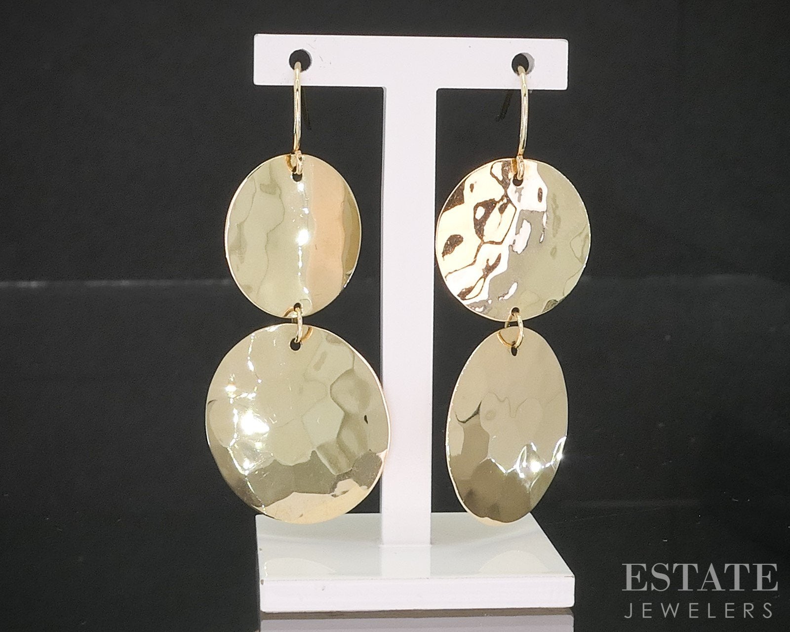 Vintage 14k Yellow Gold Hammered Disk Dangle Earrings 2.9g p16596b