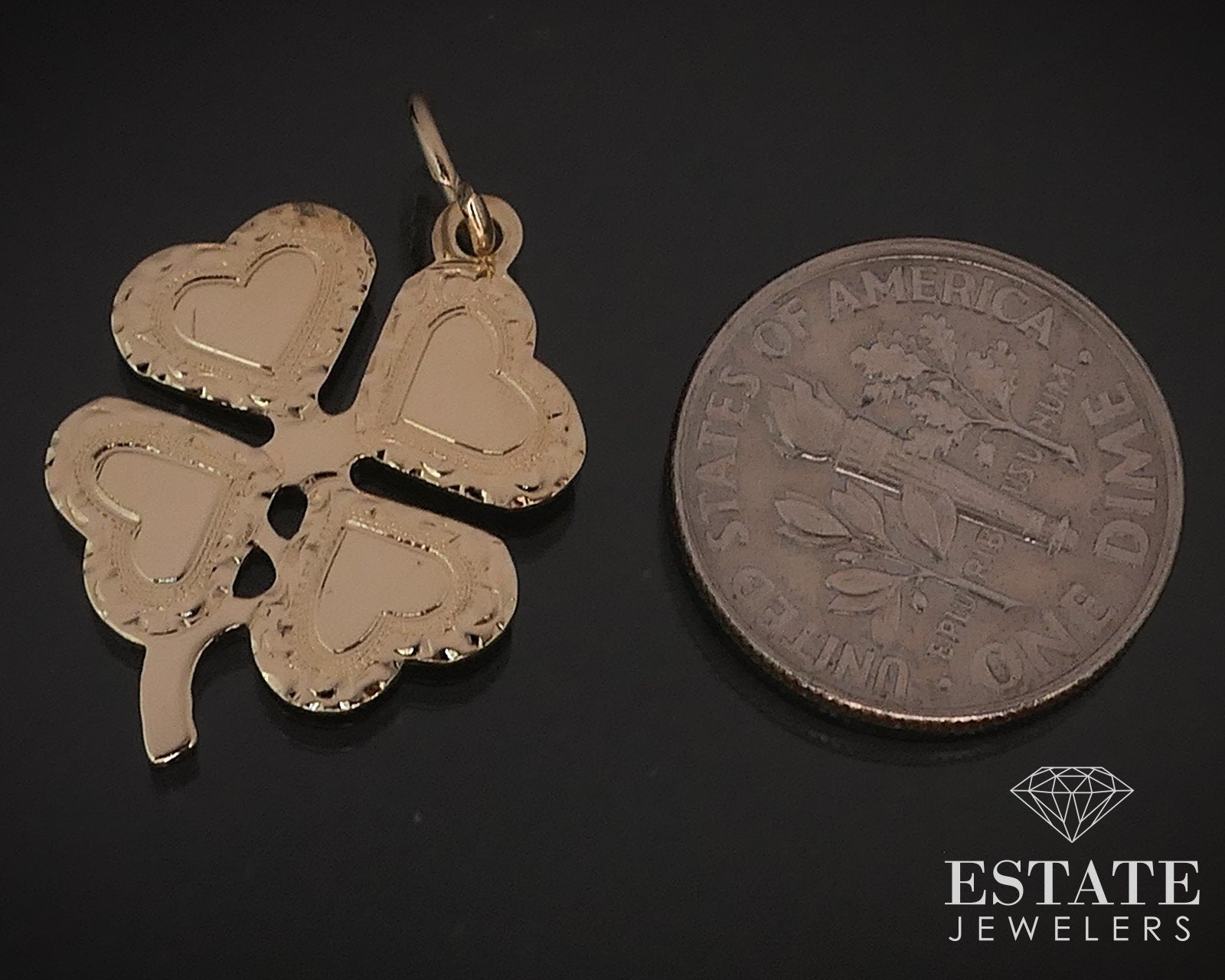 Vintage 14k Yellow Gold Heart 4 Leaf Clover Charm 2.1g i16909