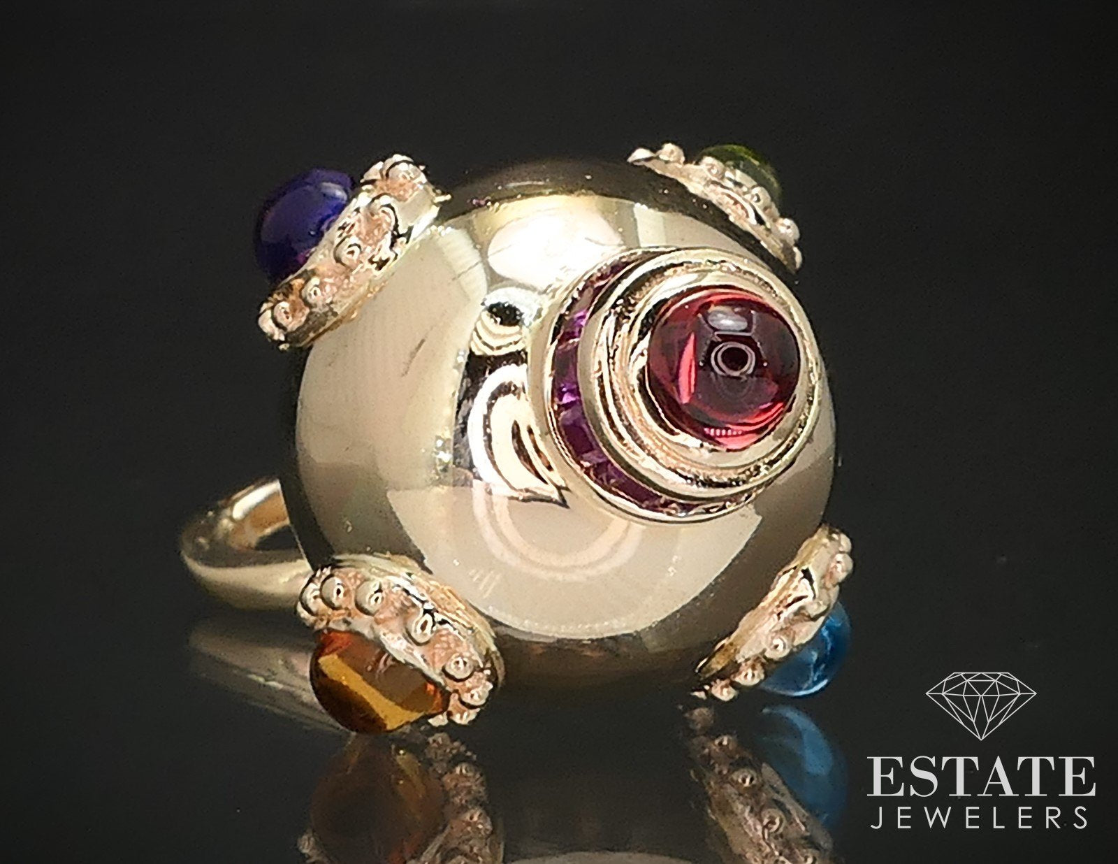Vintage 14k Yellow Gold Multi Gem Dimensional Orb Sputnik Charm 10.7g p72616