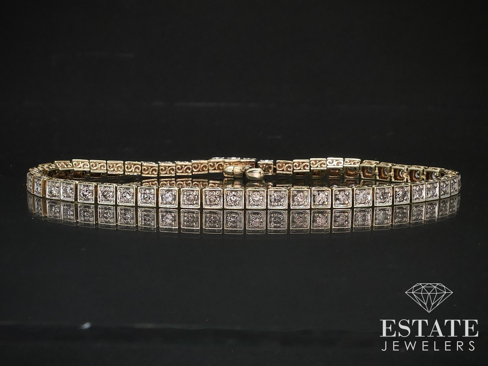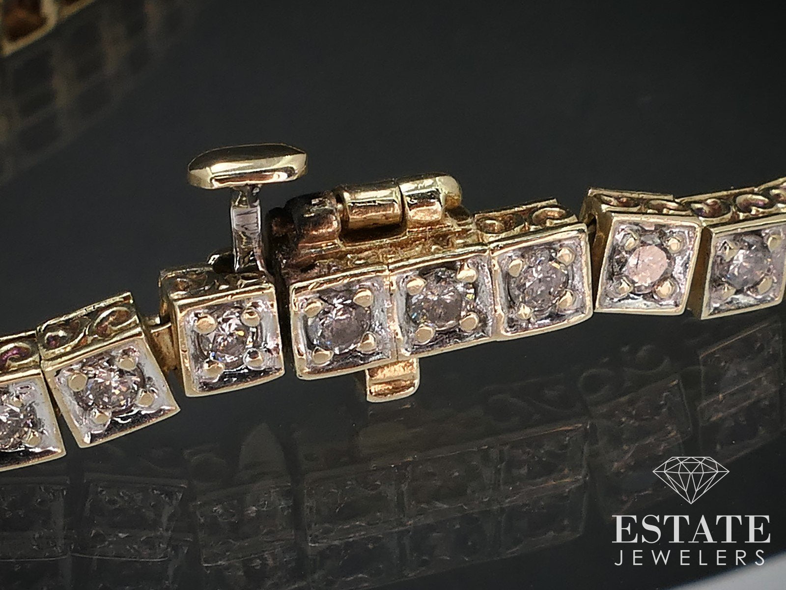 Vintage 14k Yellow Gold Natural 1.5ctw Diamond Tennis Bracelet 10g 7.5"L i17001