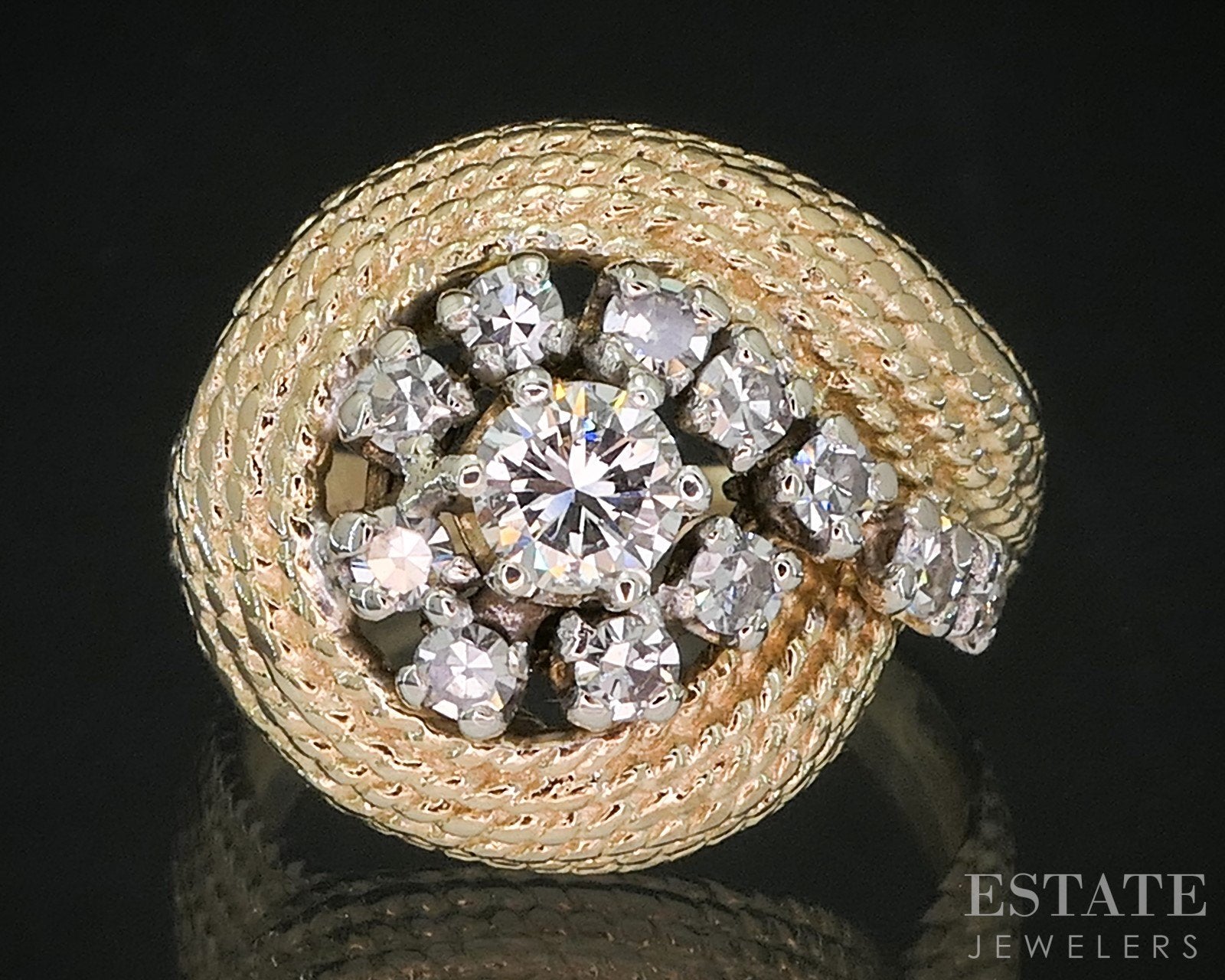 Vintage 14k Yellow Gold Natural .58ctw Diamond Spiral Swirl Rope Ring 7g i20227