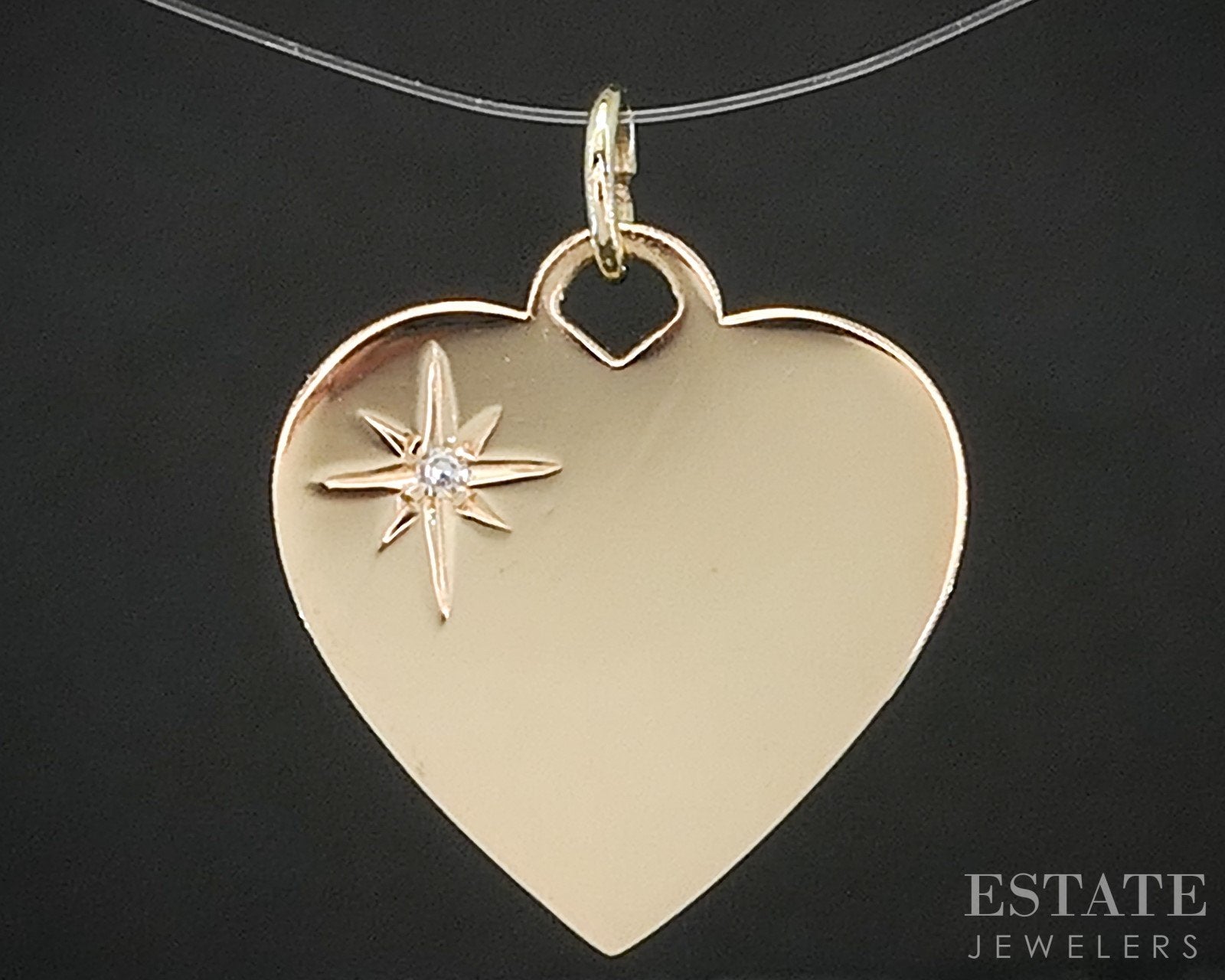 Vintage 14k Yellow Gold Natural Diamond Heart Charm Pendant 2.5g p15541