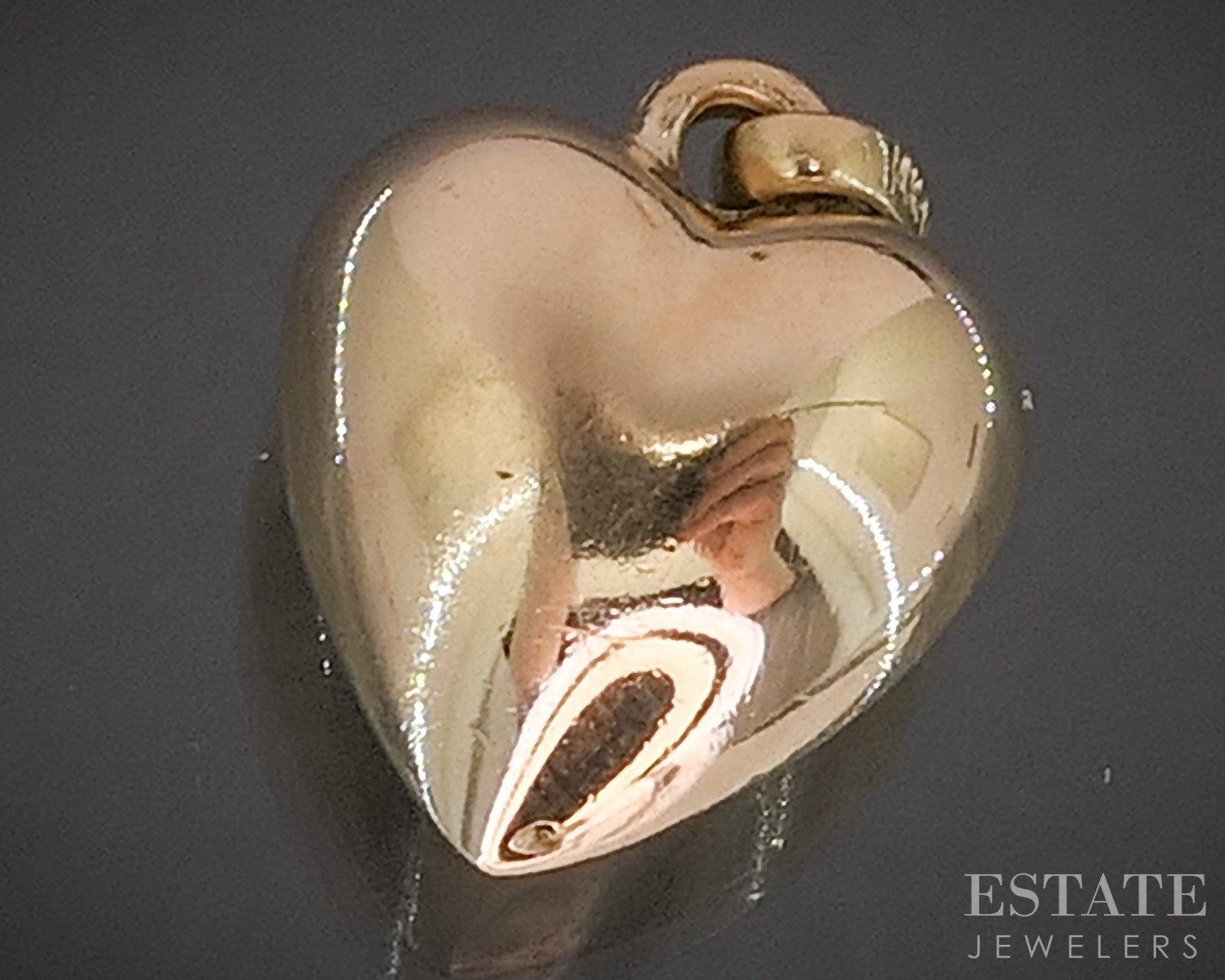 Vintage 14k Yellow Gold Natural Diamond Puffy Heart Charm Pendant 1.1g p19296b
