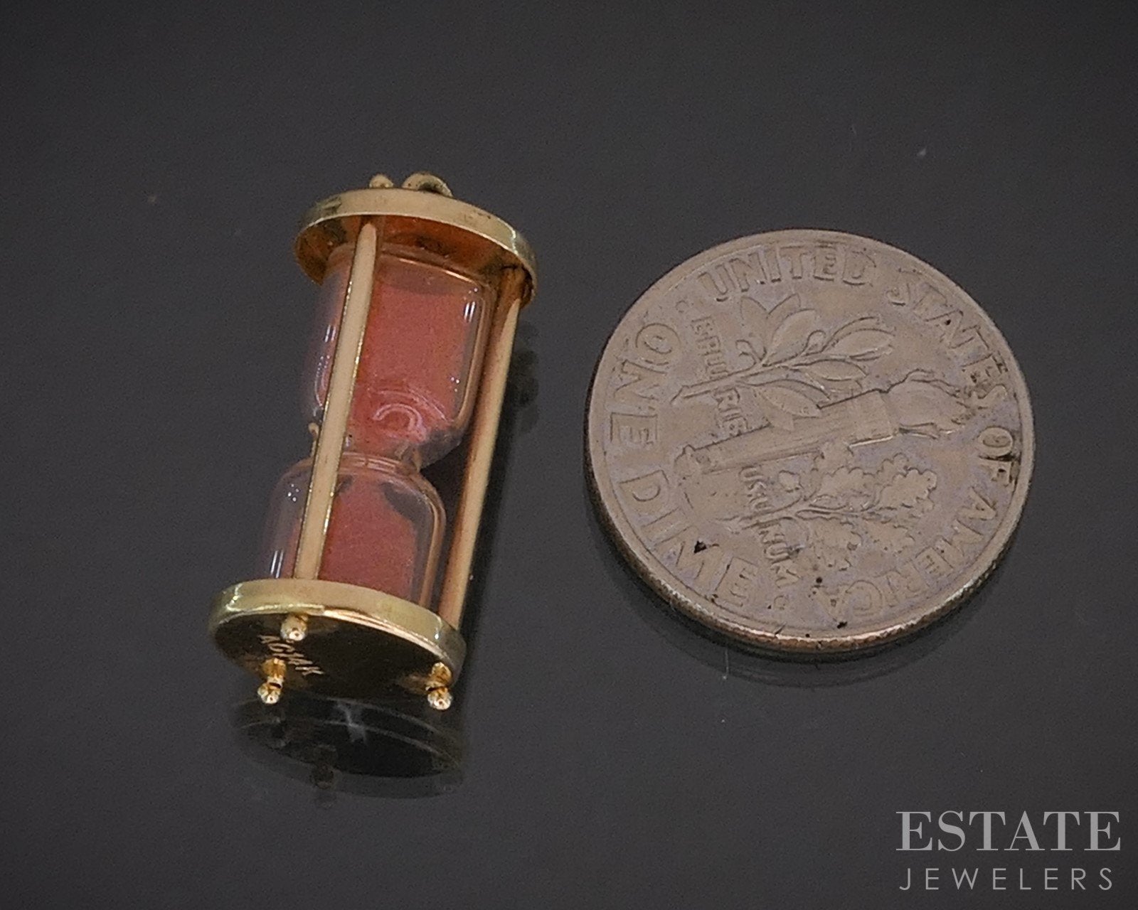 Vintage 14k Yellow Gold Pink Sand Hour Glass Charm 1.7g i20317