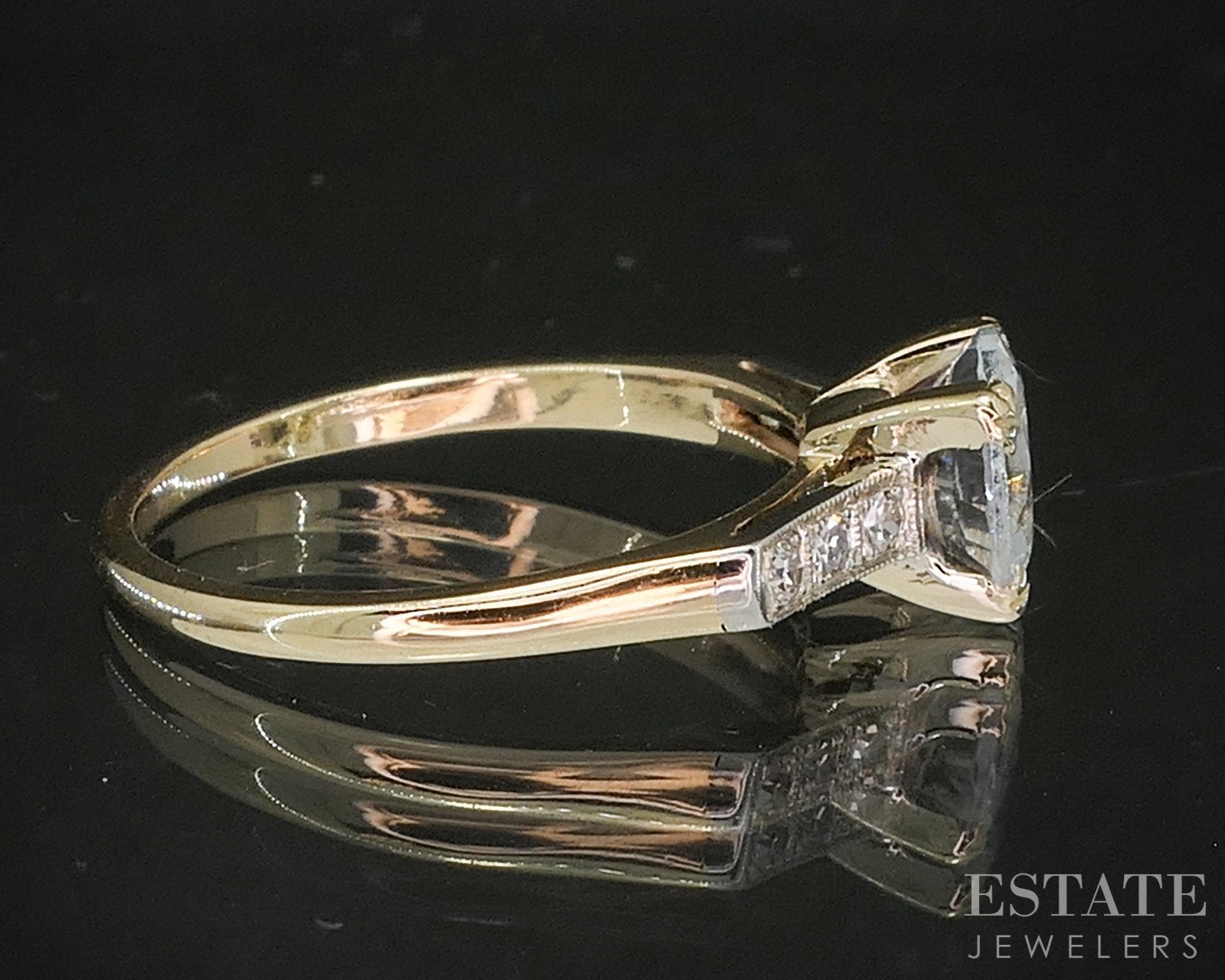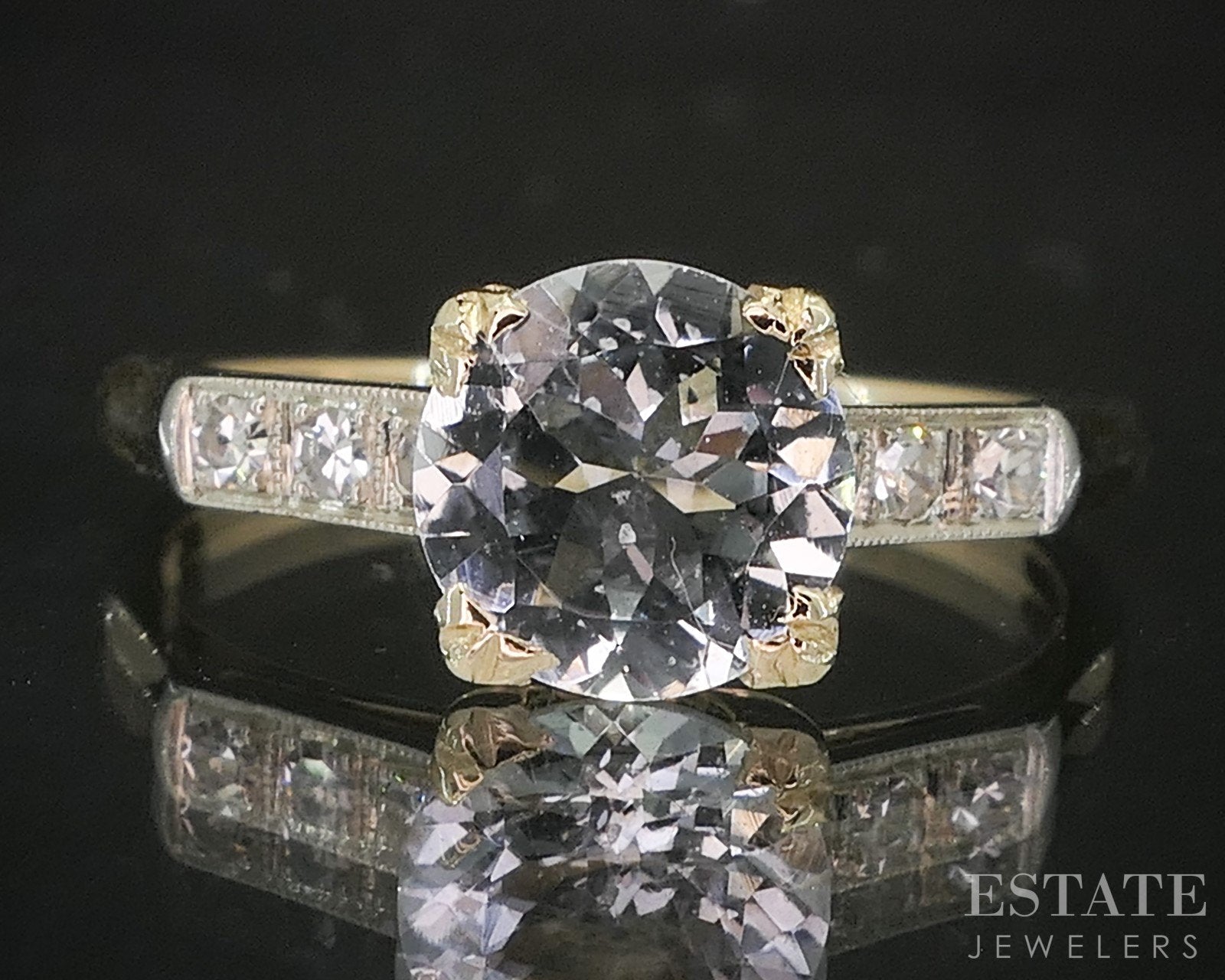 Vintage 14k Yellow & White Gold Natural Aquamarine & Diamond Ring 2.2g p16244