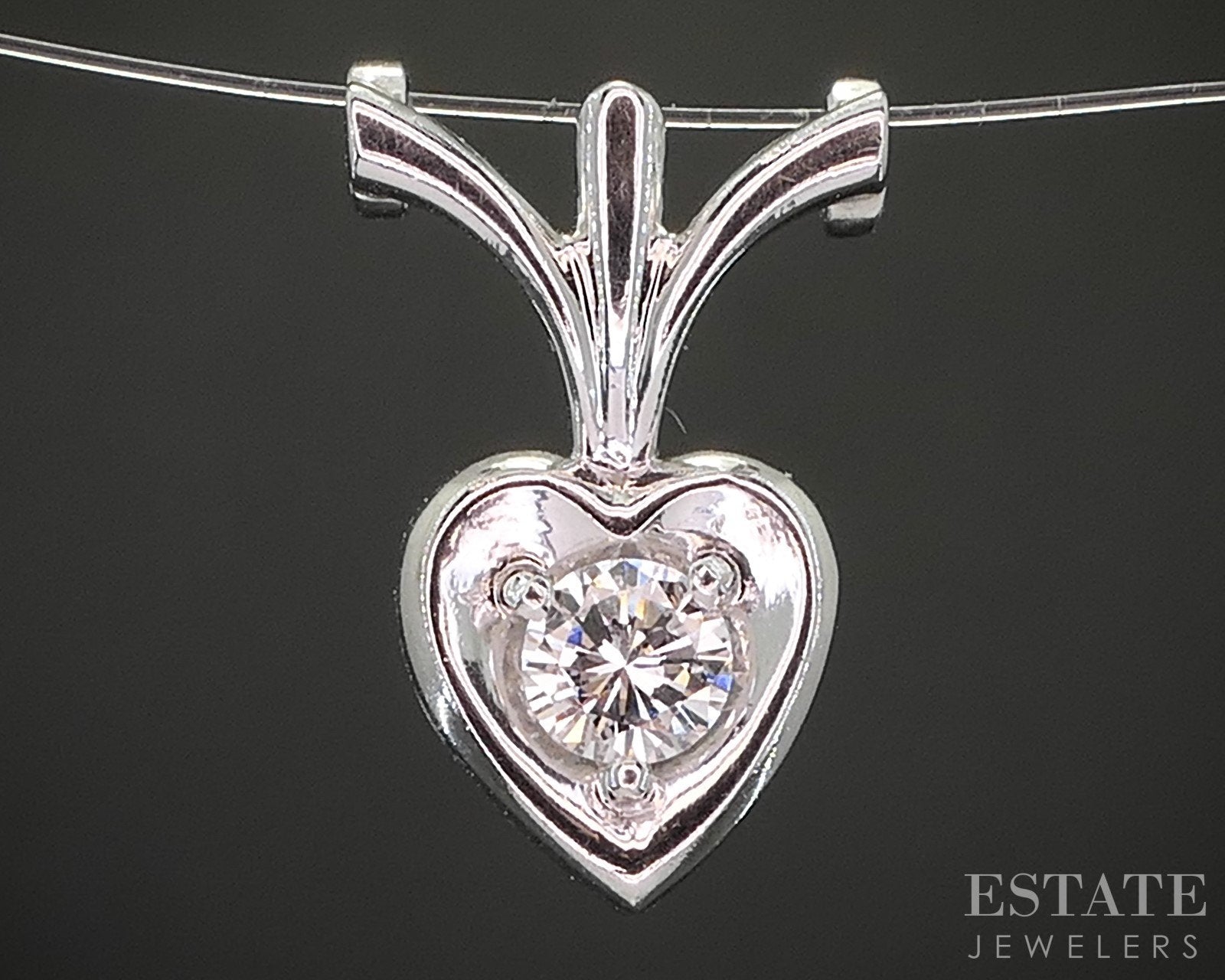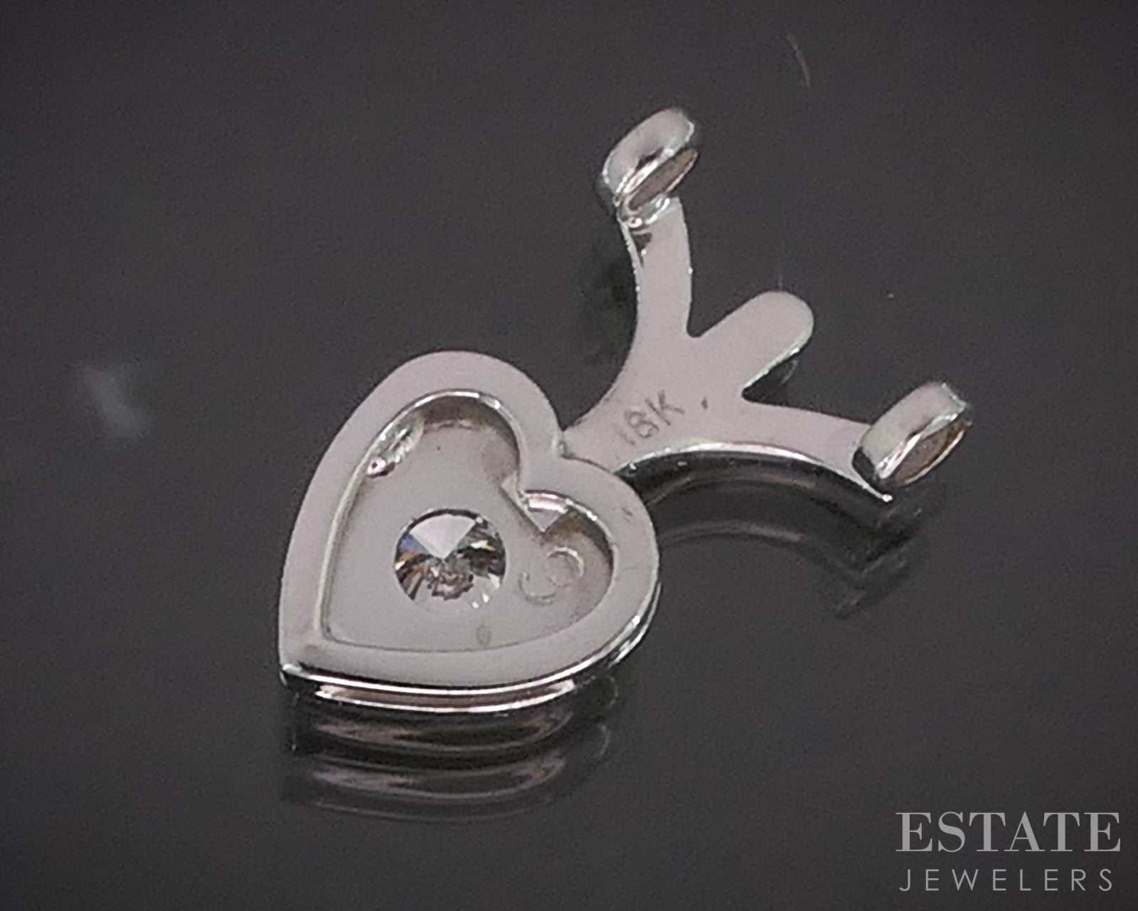 Vintage 18k White Gold Natural .15ct Diamond Heart Ladies Pendant 0.7g i20362b