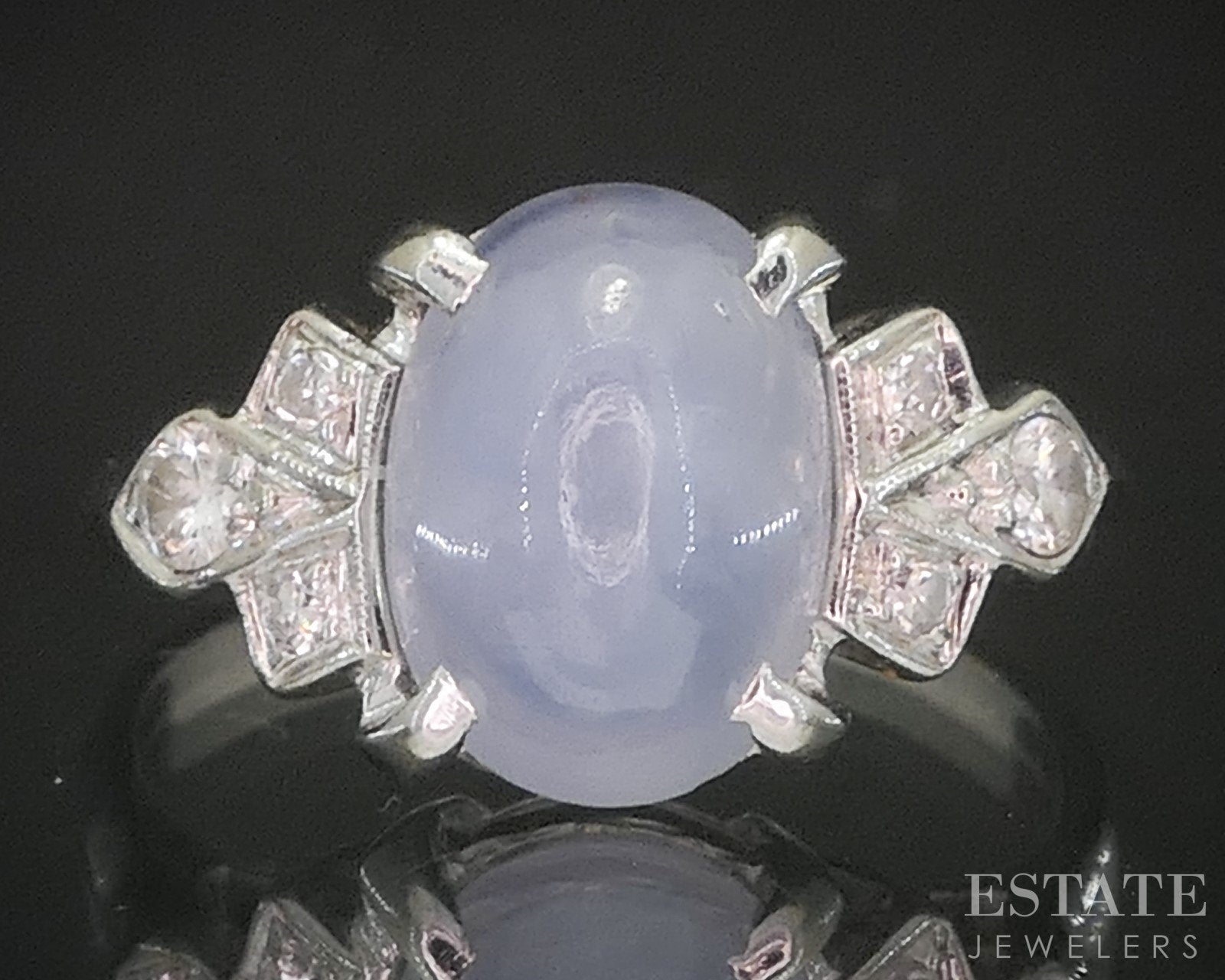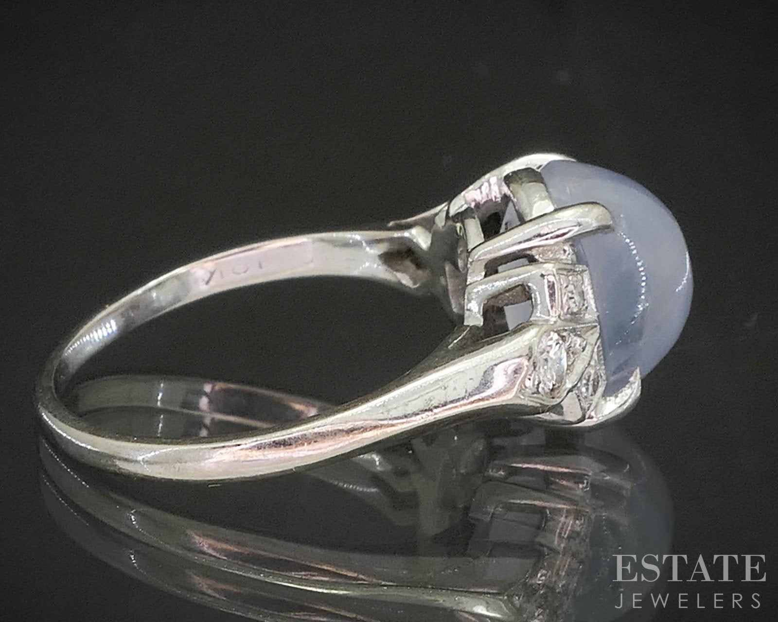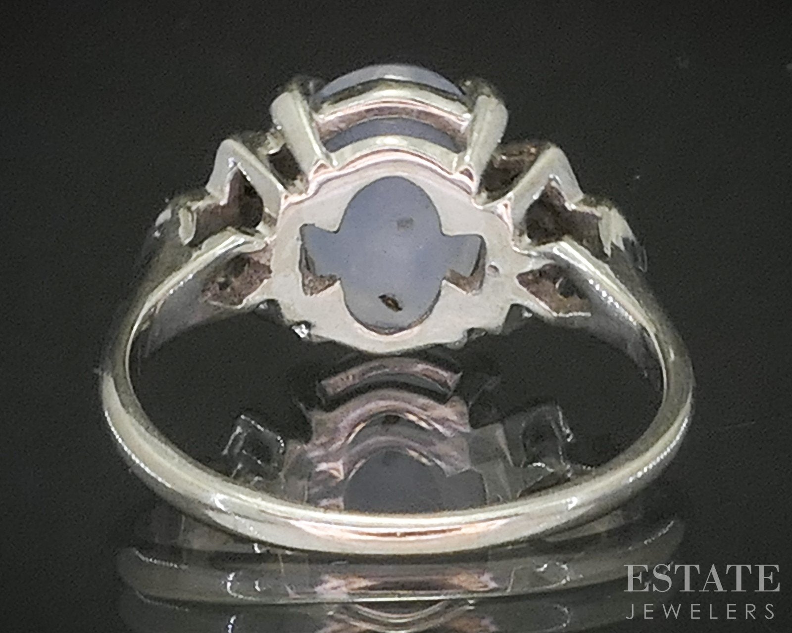 Vintage 18k White Gold Natural Blue Star Sapphire & Diamond Ring 3.9g i20487
