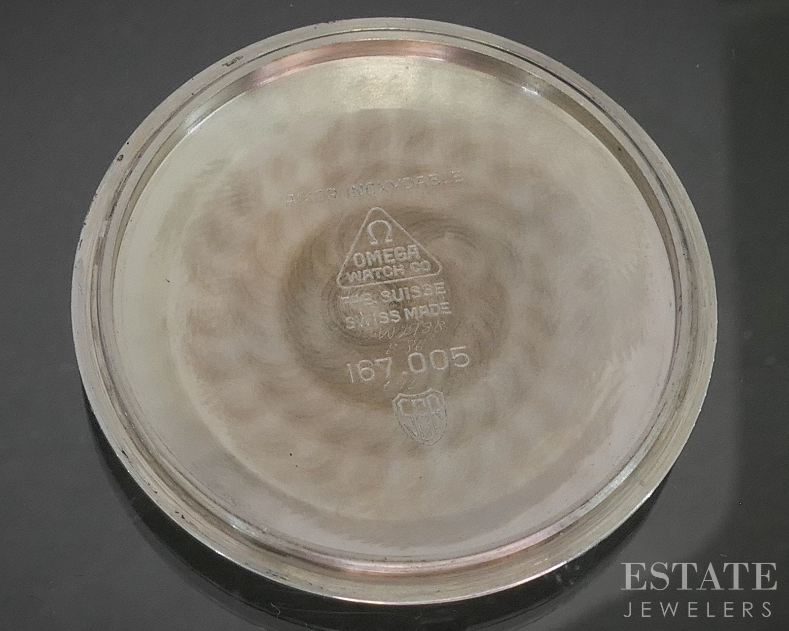 Additional Info: Handsome men's watch from Omega with a mint dial and unique dog leg style lugs. Case reference number 167.005. Automatic watch winds up and runs great.
