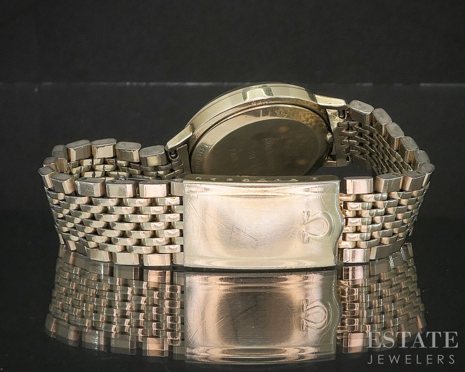 Additional Info: Handsome men's watch from Omega with a gold filled case and original beads of rice Omega bracelet. Yellow gold stick markers and and date window at the 3. Watch has a new battery and runs.