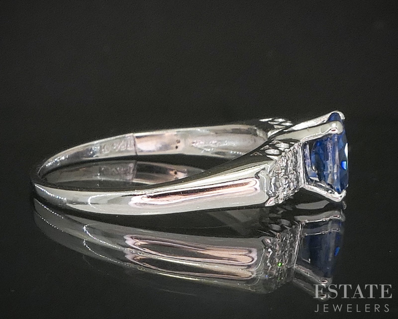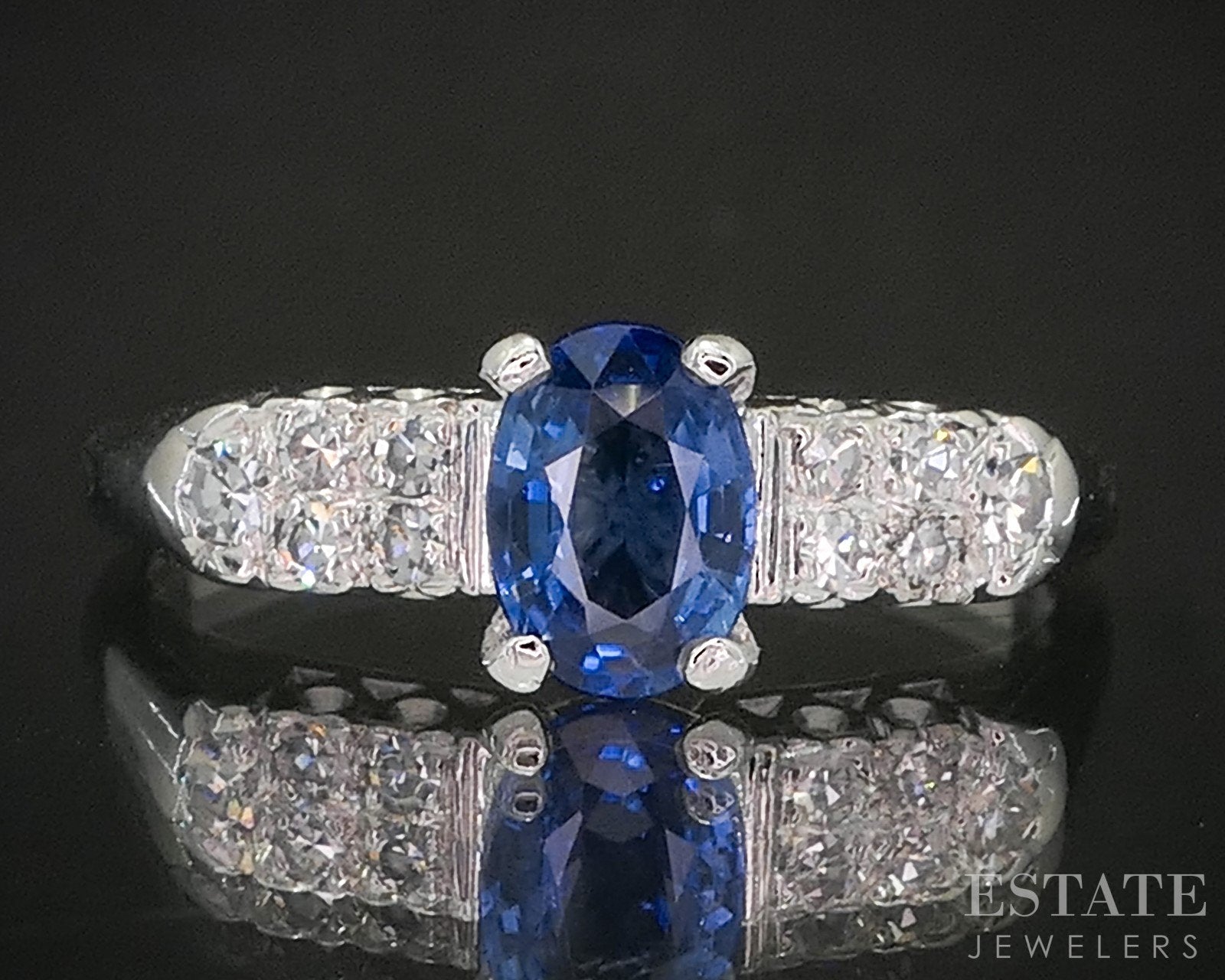 Vintage Platinum Oval Natural Blue Sapphire & Diamond Engagement Ring p17163