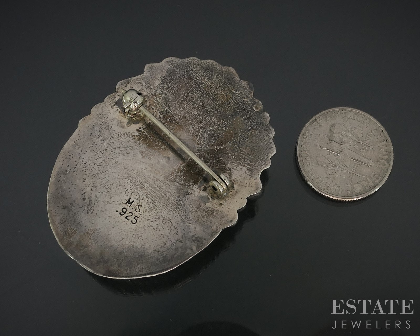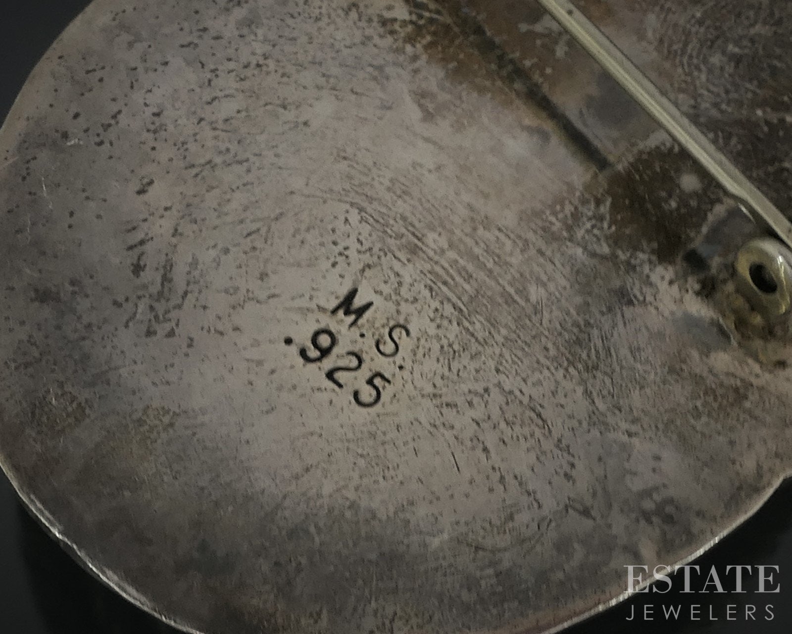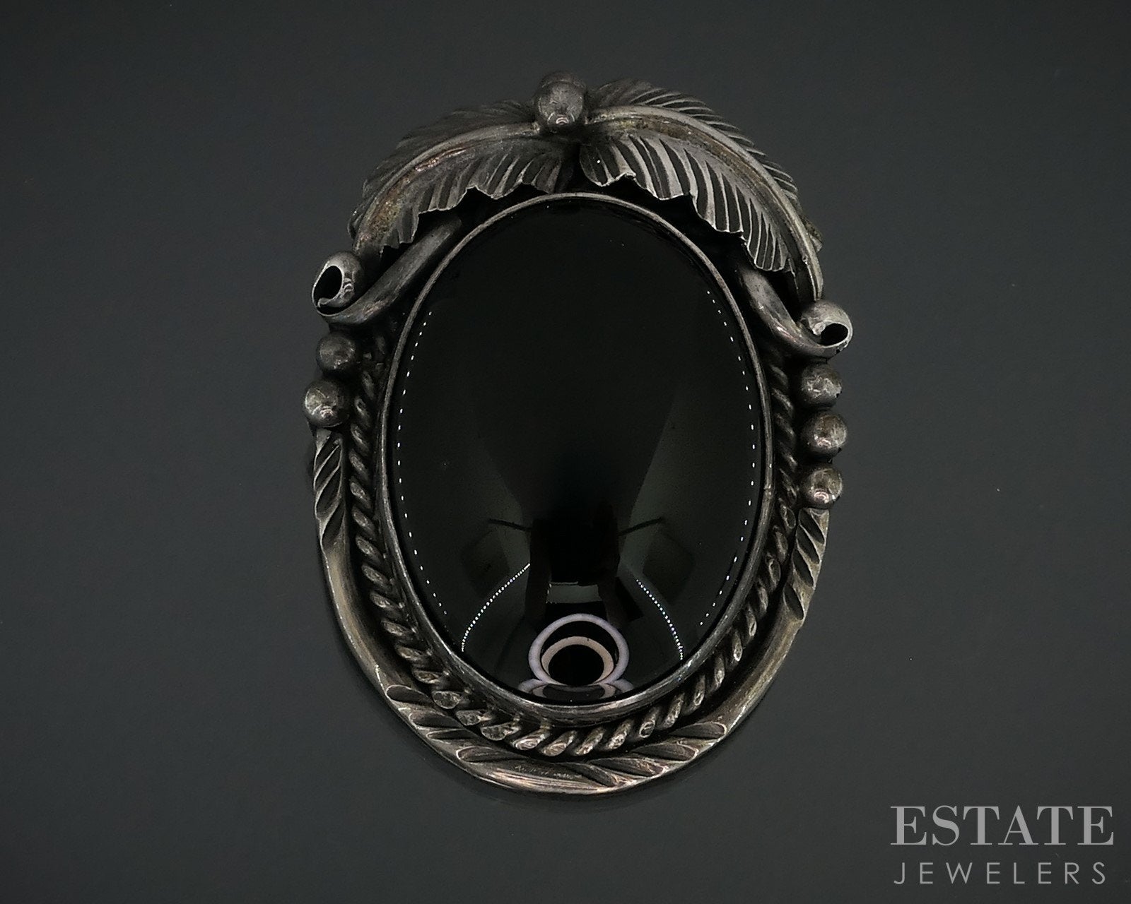 Additional Info: Unique signed Native American brooch with a bezel set natural Black Onyx gem.