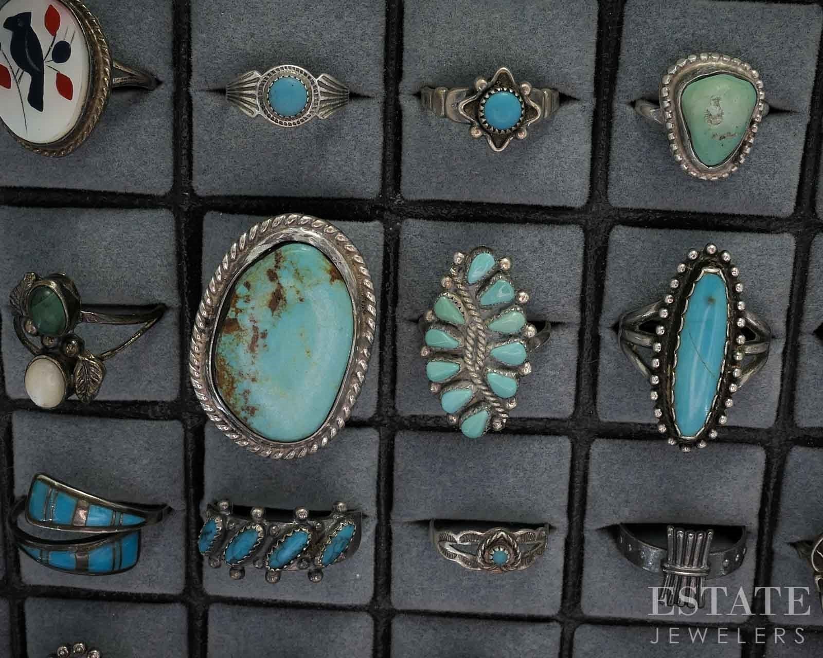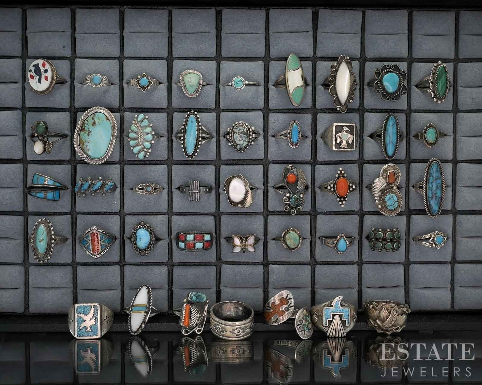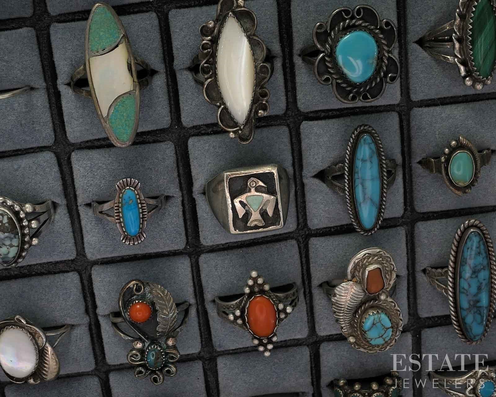 Vintage Sterling Native American Signed Multi Gem Rings Lot of 52 185g i19712