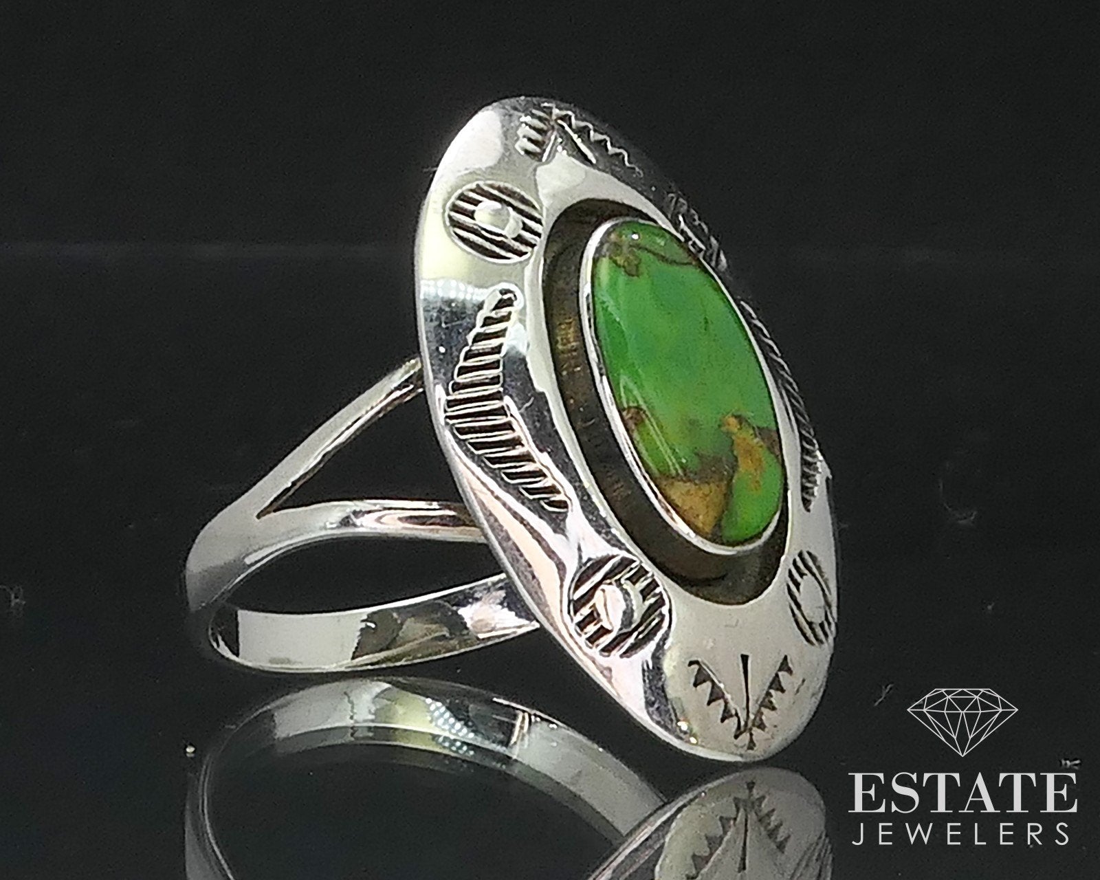 Vintage Sterling Natural Green Turquoise Southwestern Shield Ring 5.4g i17345