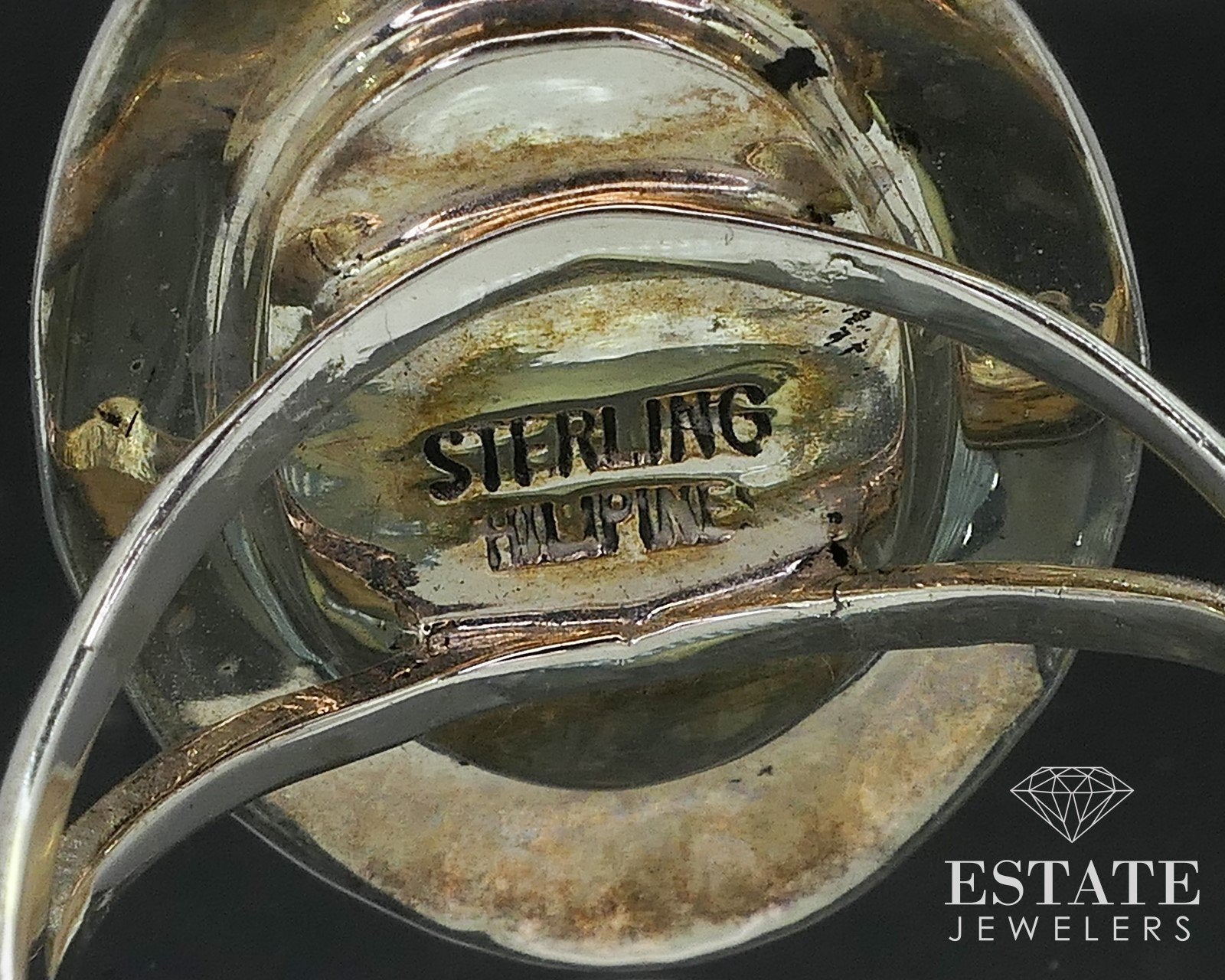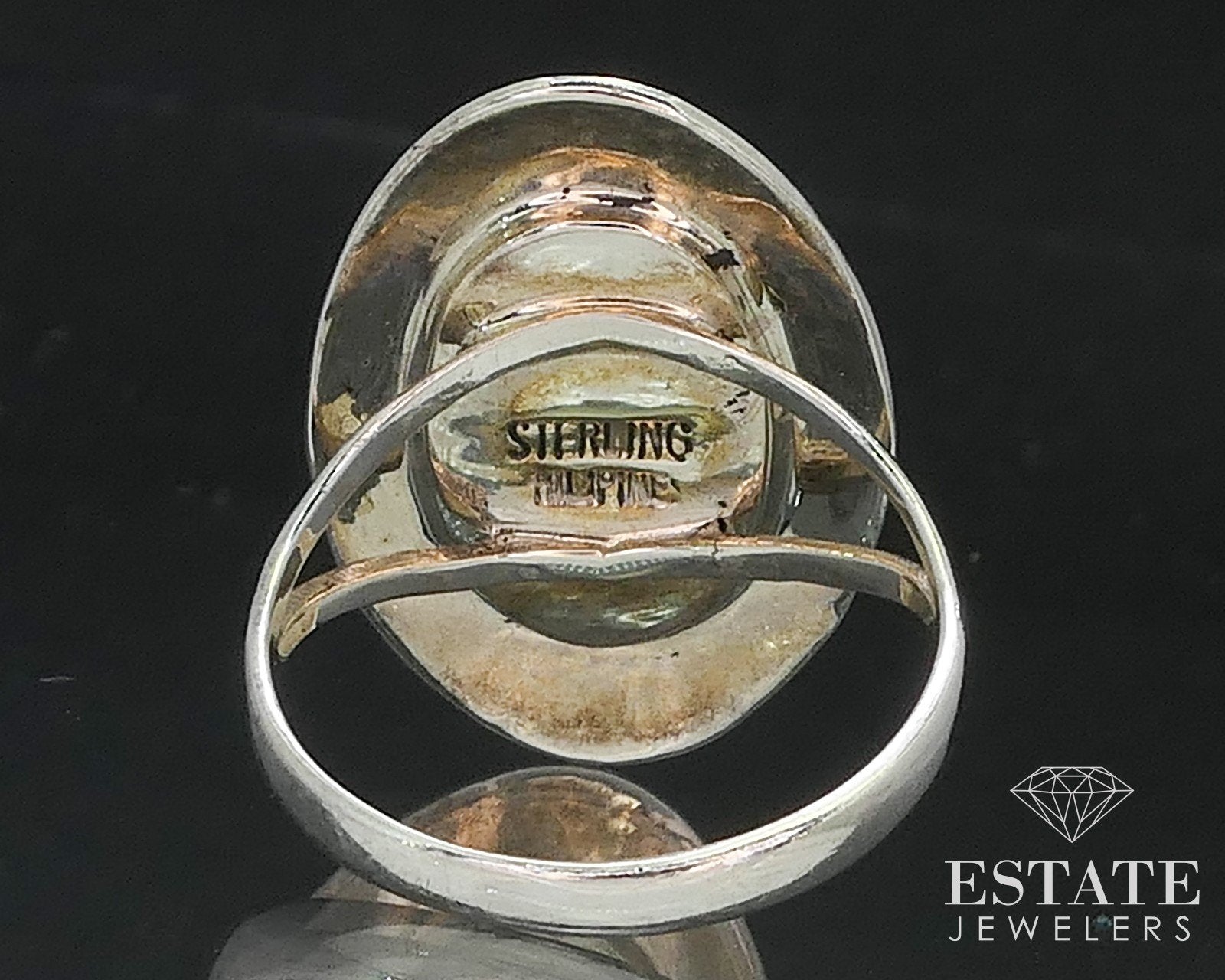 Genuine southwestern ladies sterling ring with a Turquoise gemstone. 27mm tall face. stamped sterling philipines. SIZE-9