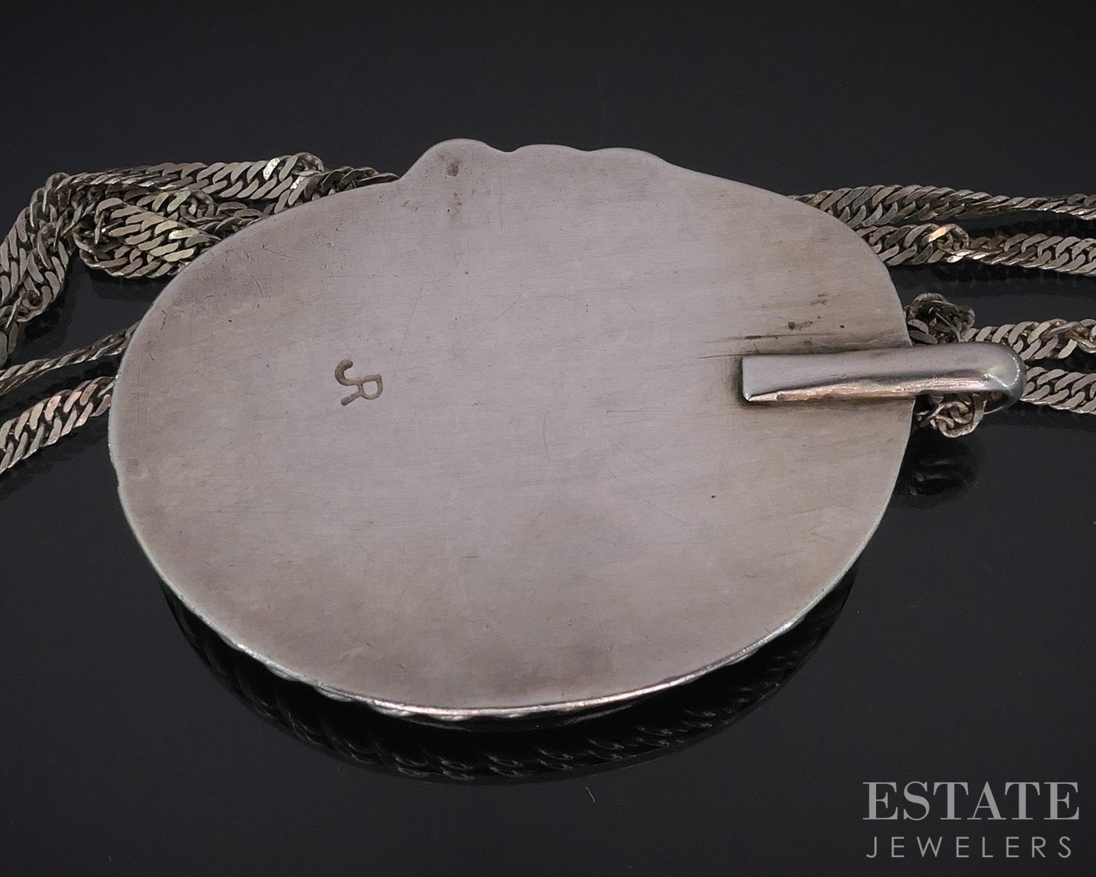 Additional Info: Large Native American necklace with a colorful bezel set natural Turquoise gem on the signed pendant.