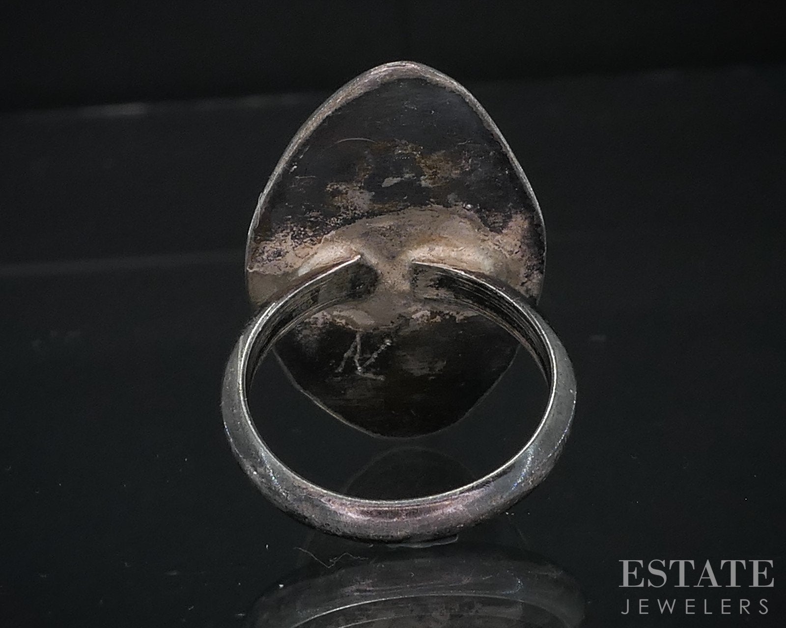 Vintage Sterling Natural Turquoise Navajo Shadowbox Signed Ladies Ring 7g i18715