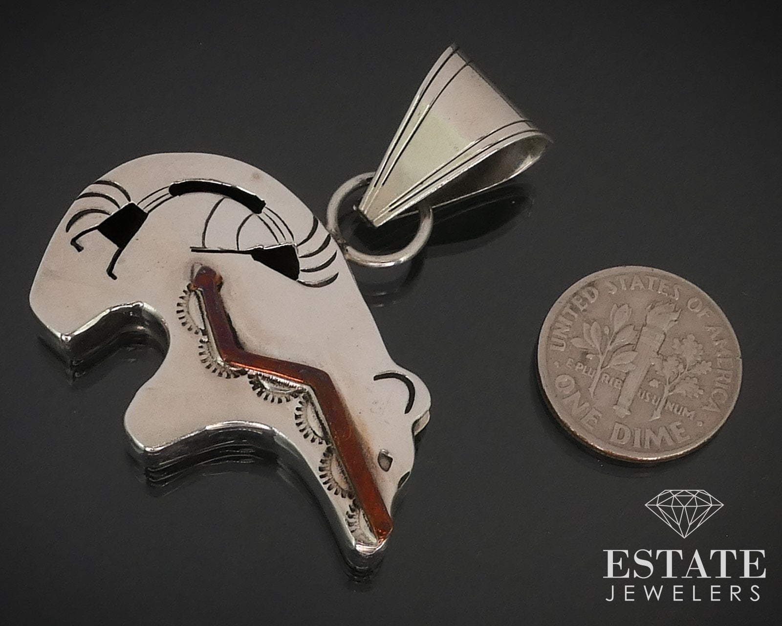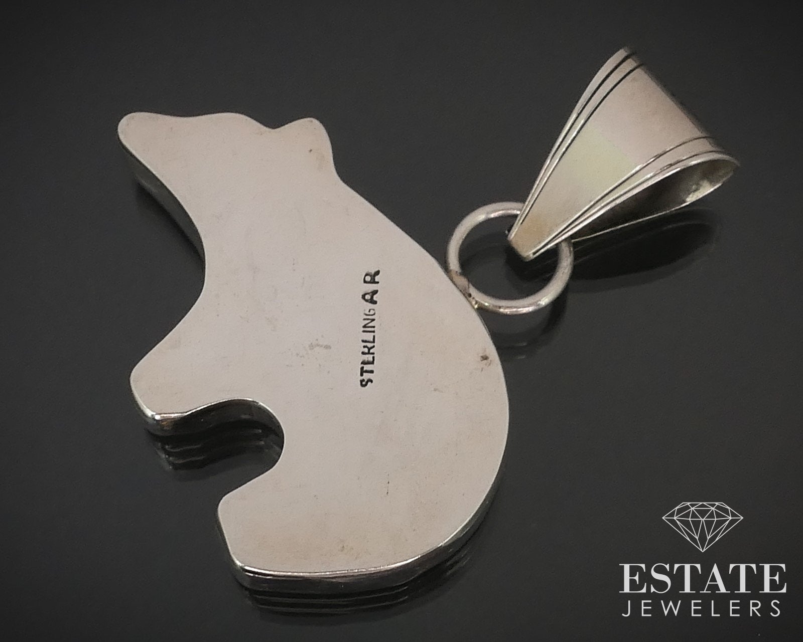 Vintage Sterling Signed AR Navajo Kokopelli Heartline Bear Pendant 9.8g i15945