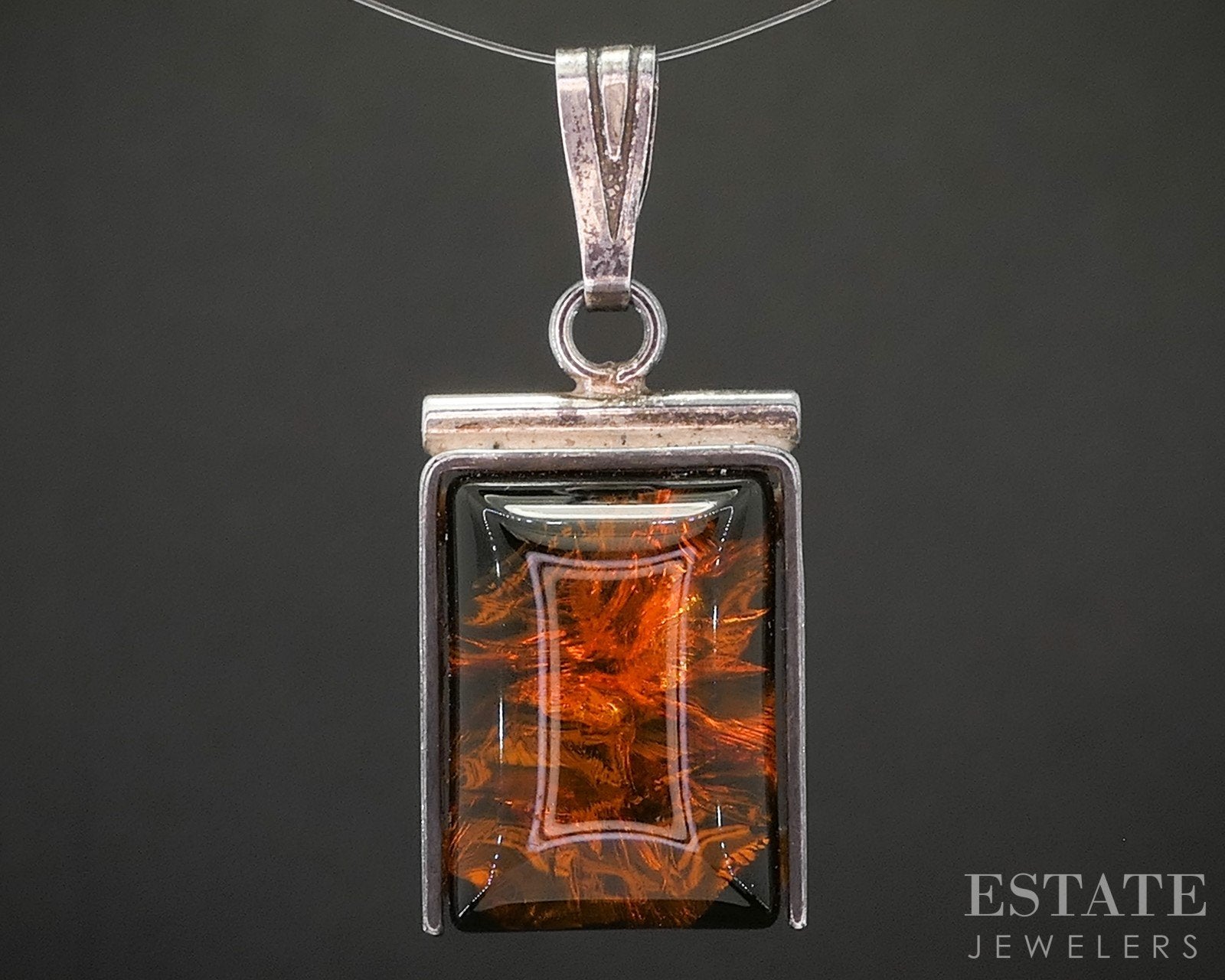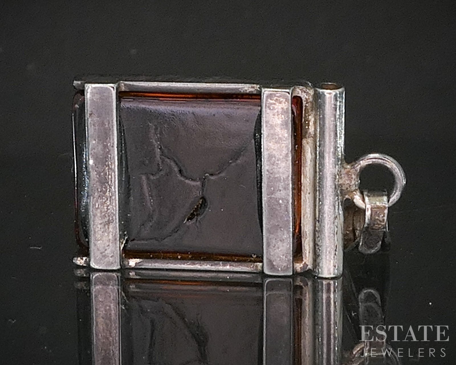 Vintage Sterling Silver Natural Amber Ladies Pendant 3.9g p16388