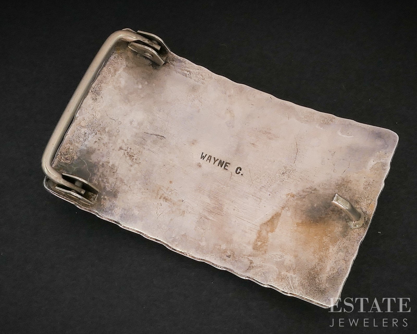 Vintage Sterling Wayne Cheanna Turquoise Feather Navajo Belt Buckle 52g i19137