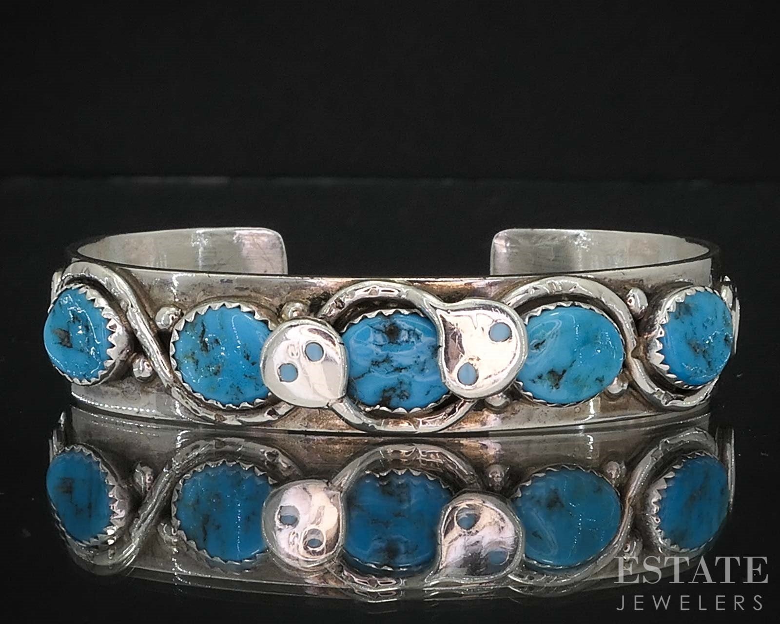 Vintage Sterling Zuni Natural Turquoise Effie C. Snake Cuff Bracelet 31g i19738
